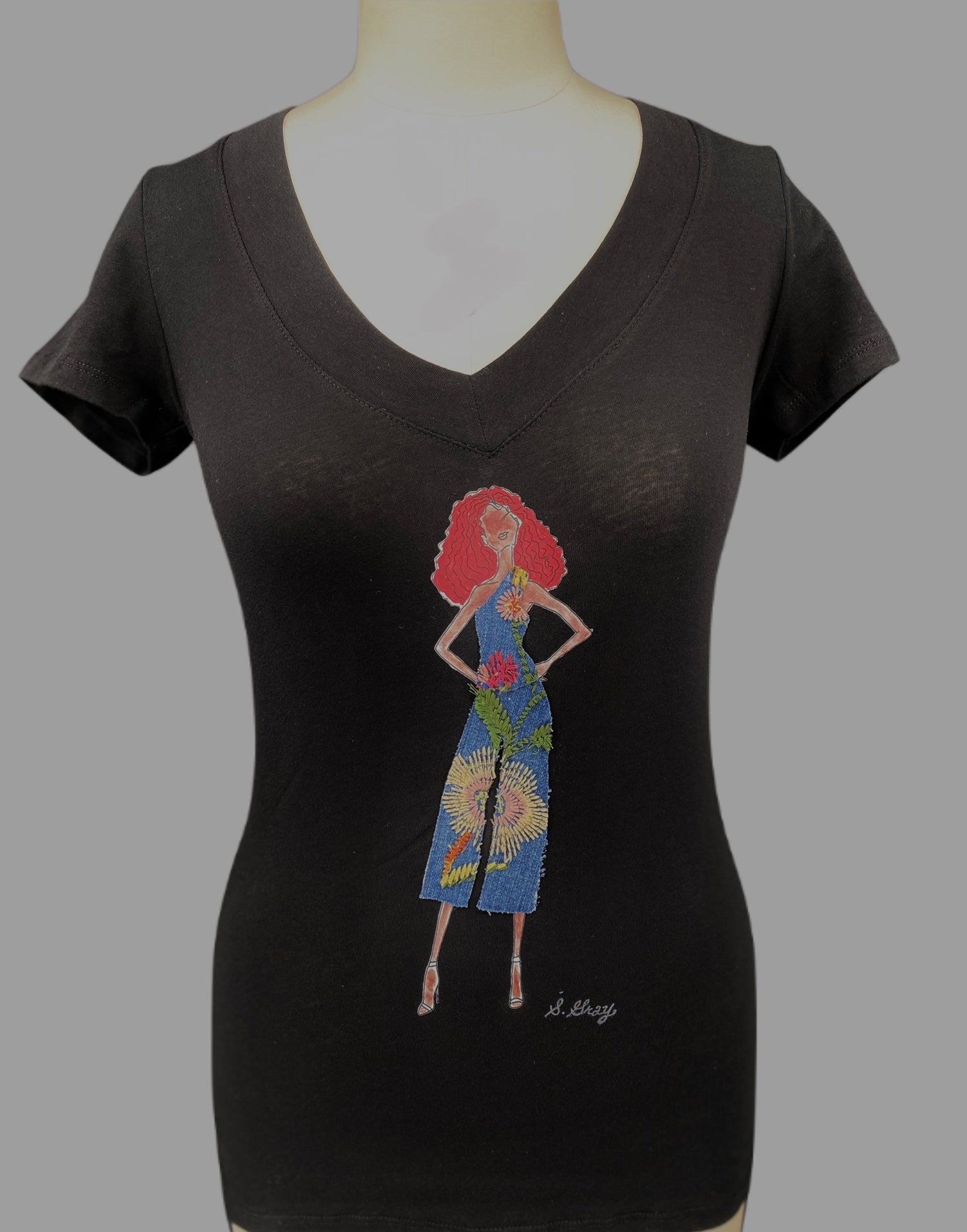 Black v-neck 100% cotton tee with excellent fit Cassie