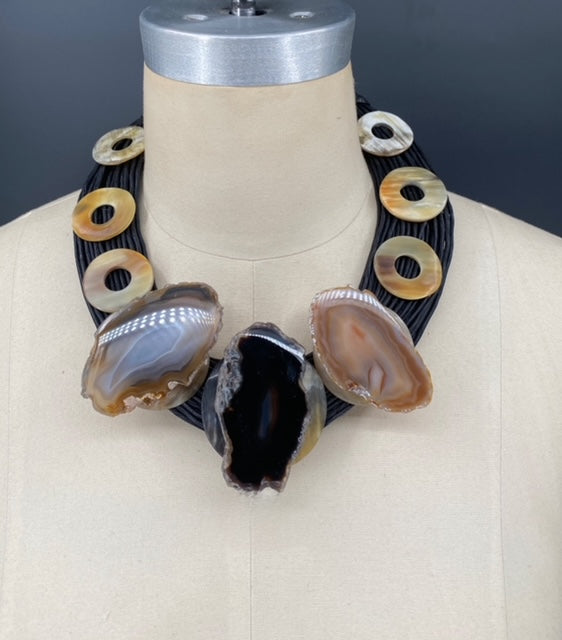 etched circles and mahogany polished cut gems