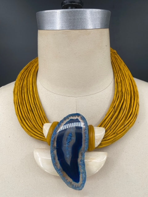 Soft Vegan leather strand tied to Ivory casings and adorned with a sheer etched