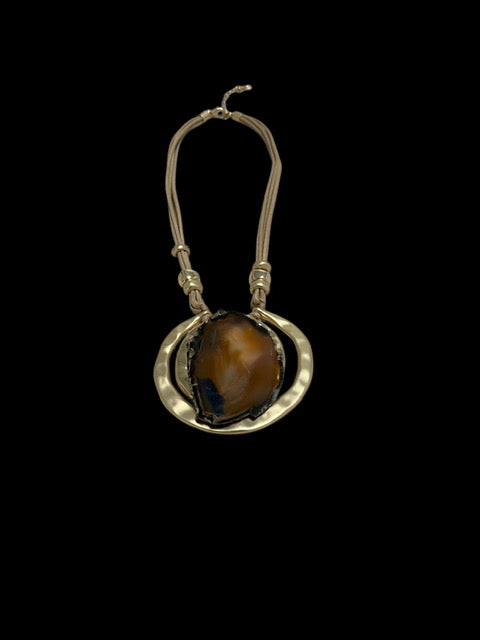 Gold circled faux suede strands with agate marbled onyx and mahogany agate stone.