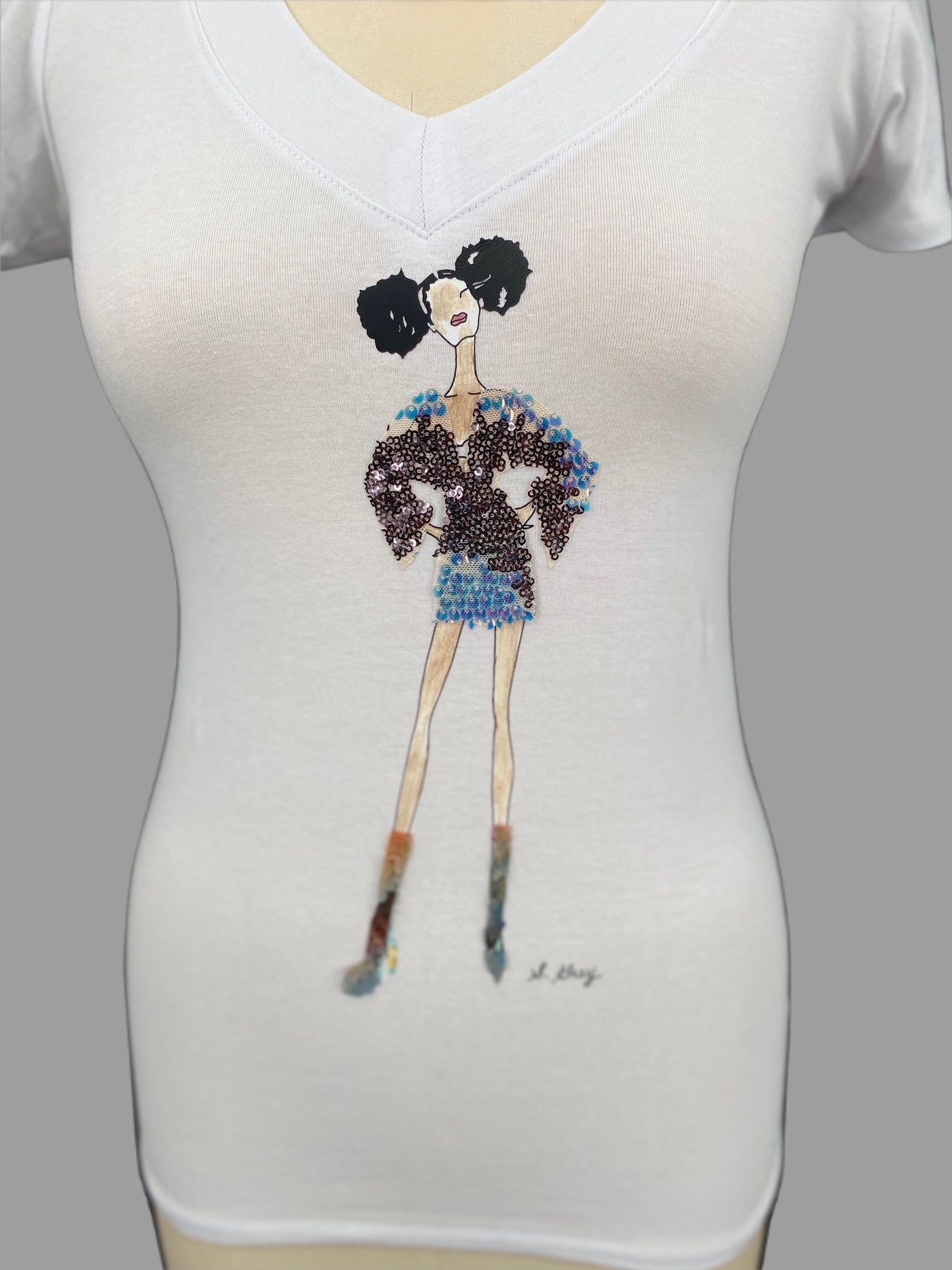 sequin two toned dress and Keisha rocking' her afro puffs.