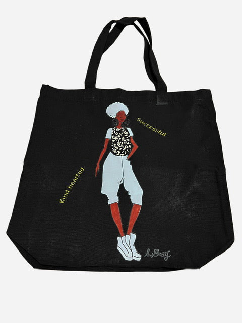Canvas black tote bag spacious and wide with inspirational