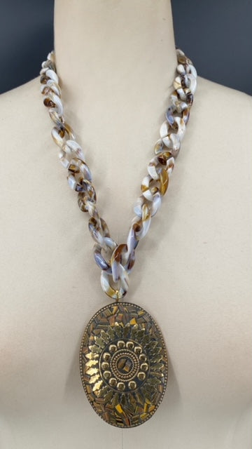Marbled chain link necklace with golden patchwork medallion
